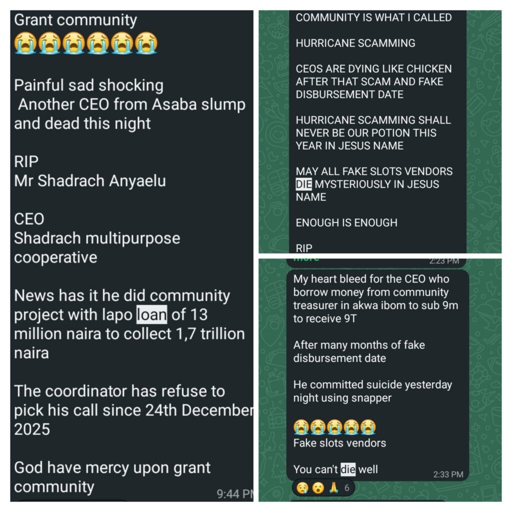 in this long process of waiting a lot of people have died, early 2025 some projects like community development project(aka pioneer) where introduced whereby people paid money to get a higher price doing more than they can afford which has lead to unnecessary extortion from middlemen in the grant community and the death of many rising from Blood pressure (BP) when they can’t repay loan at the given deadline, believing the promises of the government that they will instruct the grant handlers to do the needful, causing great serious chaos in the Grant community.